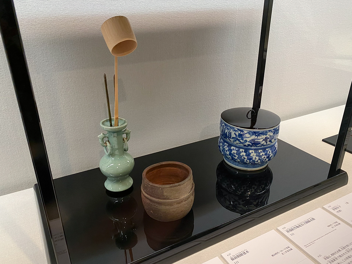 《青磁遊鐶杓立》明時代・16世紀 / 《椎頭火箸》中川浄益 明治時代 / 《備前胴紐建水》明時代・16~17世紀 / 《祥瑞松竹梅花鳥文胴締水指》明時代・17世紀