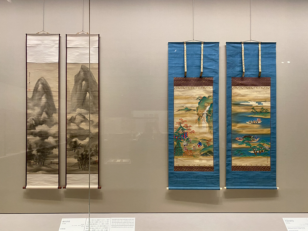 (左から)《離合山水図》谷文晁 江戸時代 文政元年(1818) / 《舟遊紅葉狩図》住吉広定 江戸時代 根津美術館