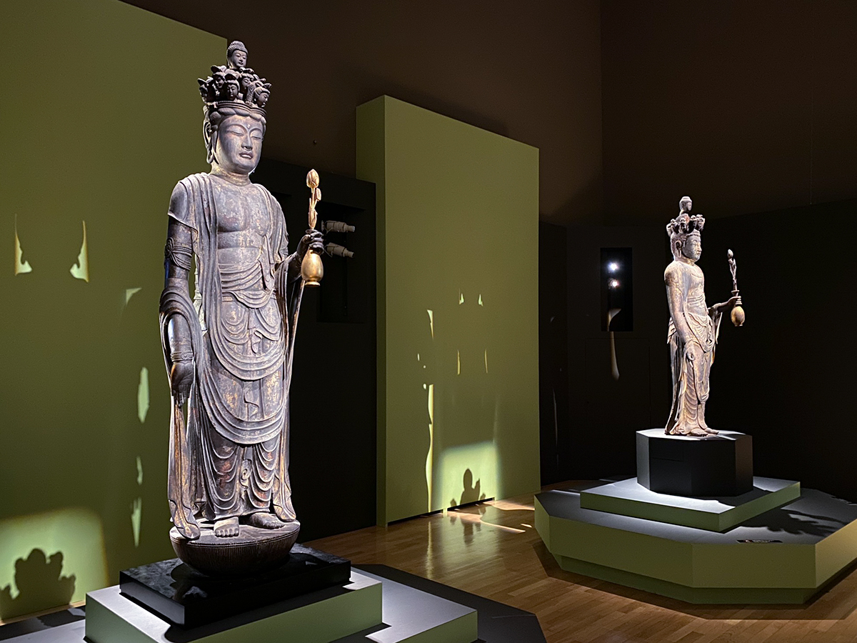 (左から)重要文化財《十一面観音菩薩立像》奈良時代 8世紀 奈良・金剛山寺(矢田寺) / 《十一面観音菩薩立像》奈良時代 8世紀 奈良・世尊寺