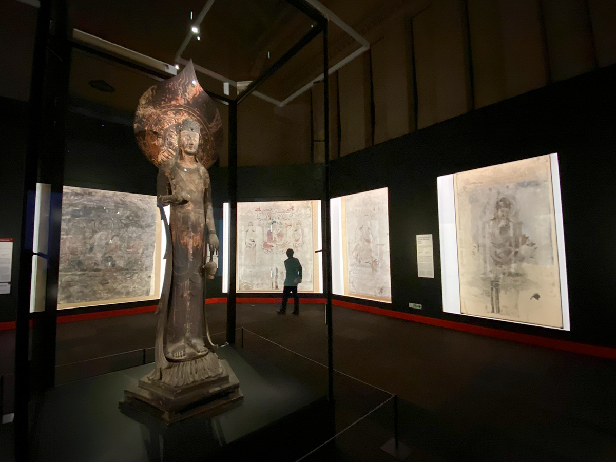 会場最後には「スーパークローン文化財」も特別出品。東京藝術大学が制作した、法隆寺金堂本尊の釈迦三尊像です。実際の像は門外不出なので、細部まで再現したうえで、高い可搬性を持つスーパークローン文化財は、今後もさまざまな場所で活用が期待されます。