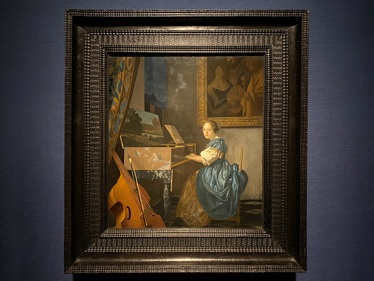 ヨハネス・フェルメール《ヴァージナルの前に座る若い女性》は、本展注目の一点。日常の一瞬を切り取った風俗画を得意としたフェルメール 。主役の女性がこちらを振り向いているのは、客人が到着したのでしょうか。