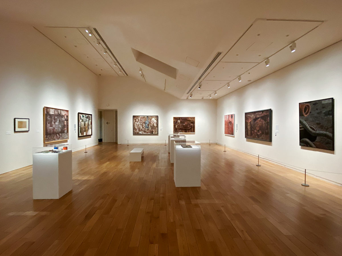 (中央)神田日勝《板・足・頭》1963年 北海道立近代美術館