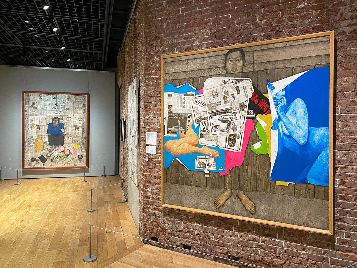 (左奥)神田日勝《室内風景》1970年 北海道立近代美術館 / (右手前)神田日勝《ヘイと人》1969年 個人蔵(神田日勝記念美術館寄託)