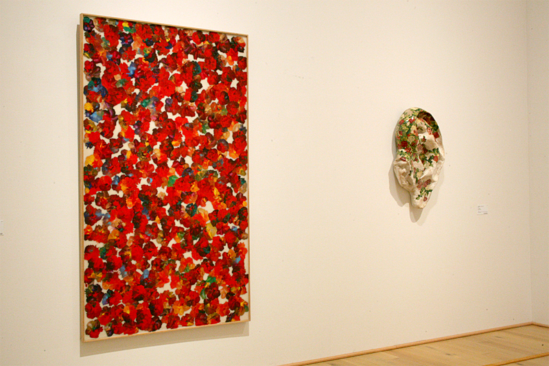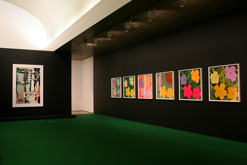 手前は福田美蘭の《モノクロームで印刷された花の静物画》
