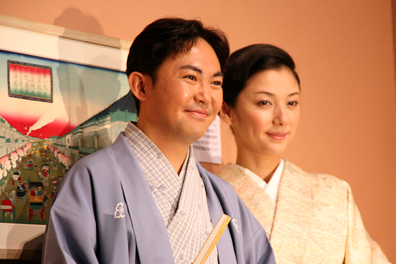 展覧会の音声ガイドは、落語家の林家三平さんと奥様の国分佐智子さんが担当。軽快な口調で日本橋の魅力を案内しています。(取材:2012年5月25日)