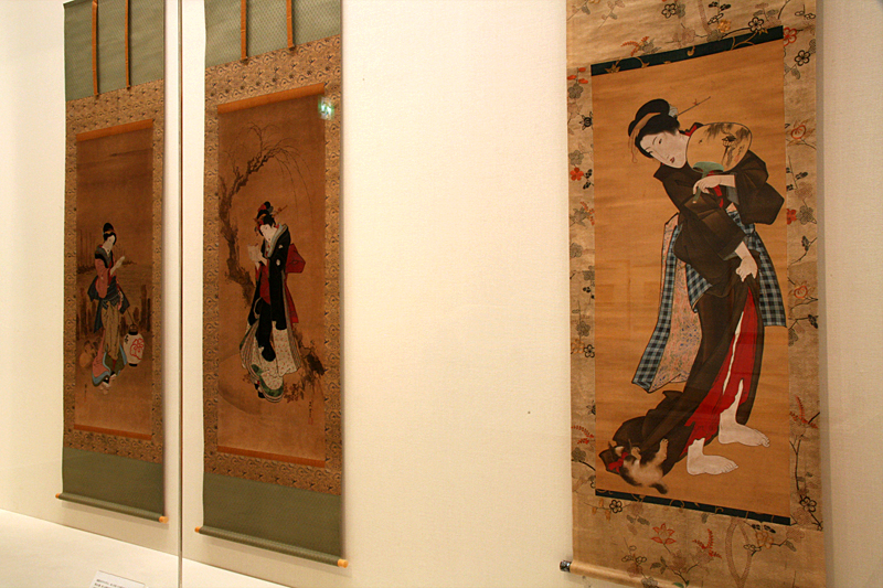 肉筆画も情緒たっぷり。背景の水墨とのコントラストも映えます