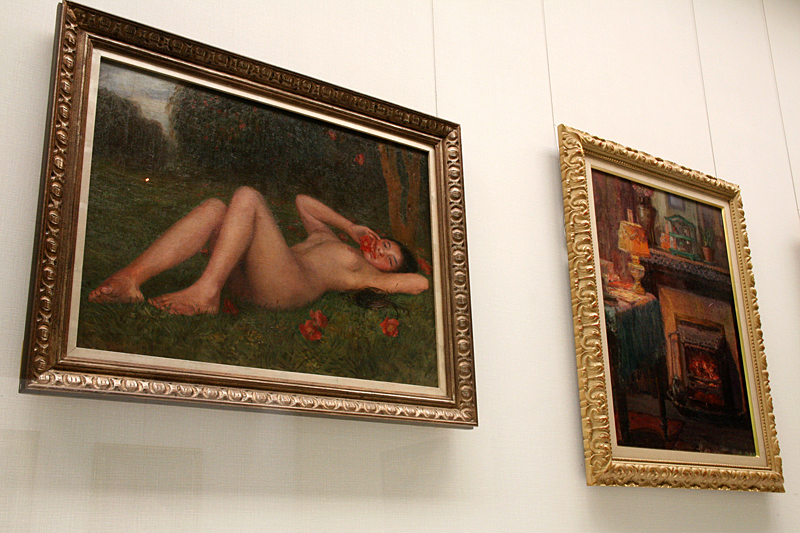 《裸婦と椿》(左)と《ランプと暖炉》。ともに児島虎次郎の作品