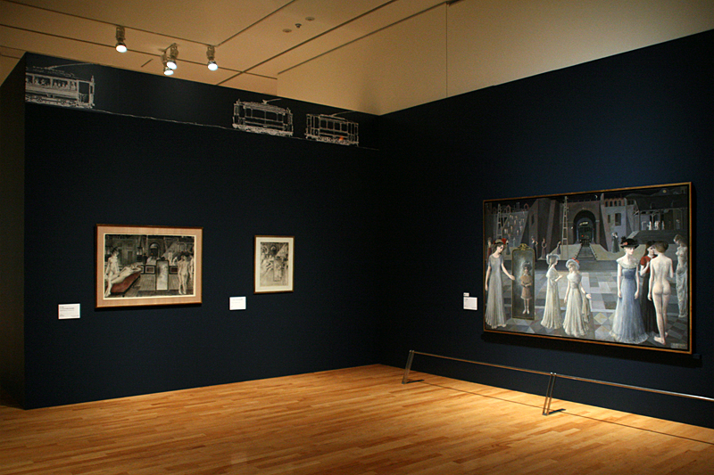第4章「ポール・デルヴォーの世界」から“帰社、トラム、駅”。壁面のグラフィックも楽しいです