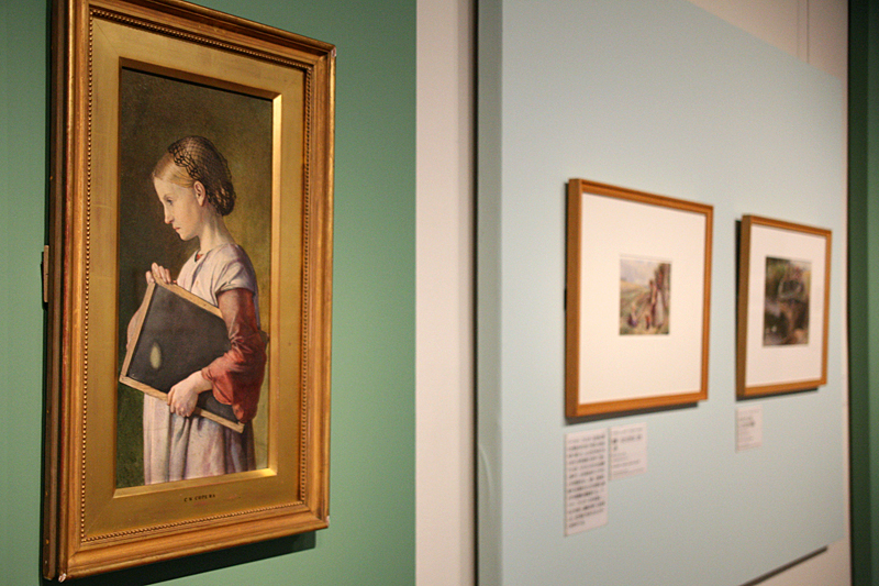 チャールズ・ウェスト・コープ《黒板を持つ少女》(左)