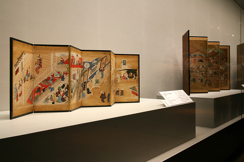 (左)奥村政信画≪中村座歌舞伎芝居図屏風≫江戸時代 享保16年(1731) 出光美術館蔵