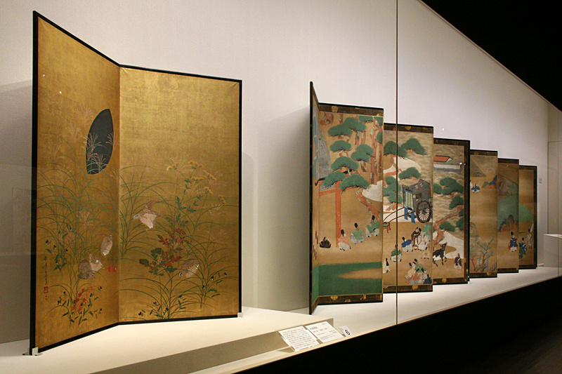 酒井抱一≪秋草鶉図≫(左) / 俵屋宗達(款)≪源氏物語図 関屋・澪標≫