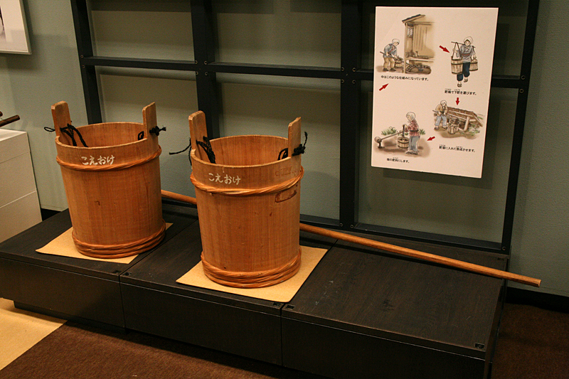 肥桶(こえおけ)は2つで60kg。中身をこぼさずに運ぶのは大変でした