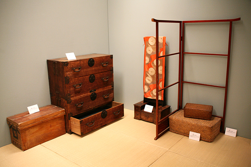「くらす」には、着物をかける衣桁(いこう)、衣類をしまう行李(こうり)など