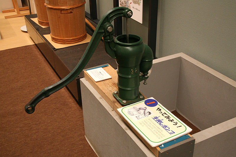 手押しポンプ。力の弱い子供でも水が汲めます