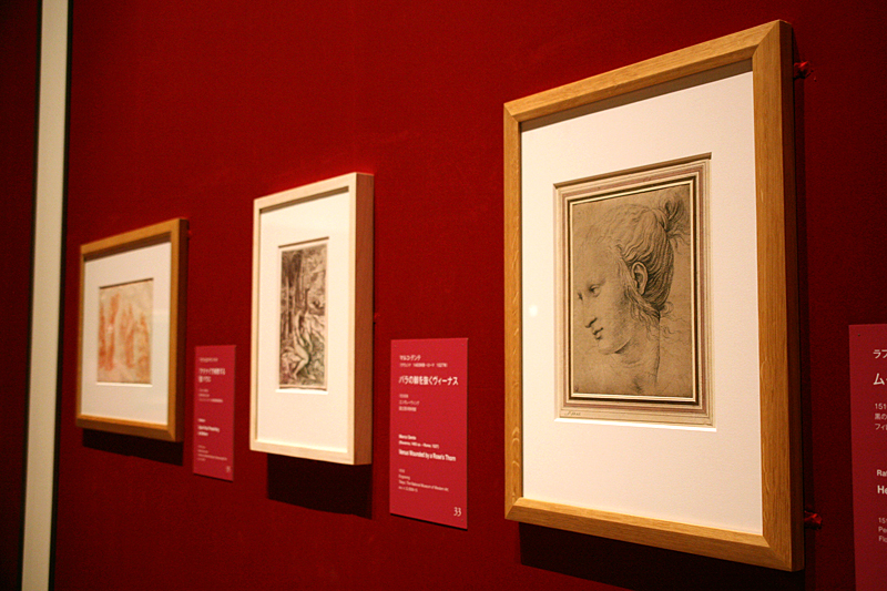 素描も出展。右手前はラファエロ・サンツィオ≪ムーサの頭部≫1510年頃 フィレンツェ、ホーン美術館