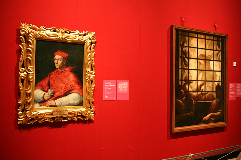 ラファエロ・サンツィオ≪ベルナルド・ドヴィーツィ(ビッビエーナ)枢機卿の肖像≫1516-17年(左) フィレンツェ、パラティーナ美術館