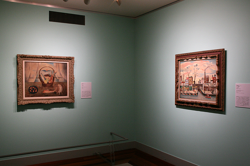 岡鹿之助《魚》、岡鹿之助《セーヌ河畔》(左から)