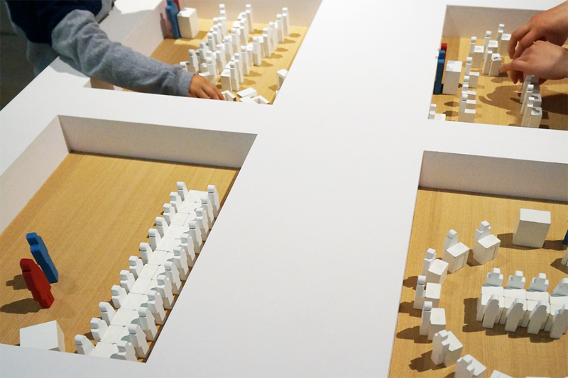 《教室の作り方》好きな教室の形を作ります。左下の作品は作った女の子曰く「いただきます」。給食の時間でしょうか