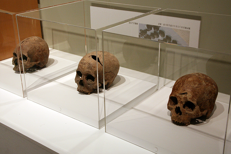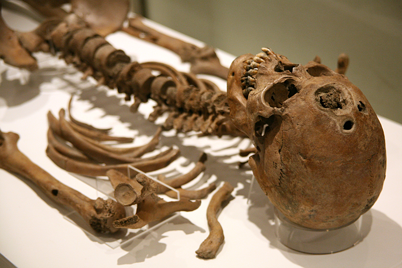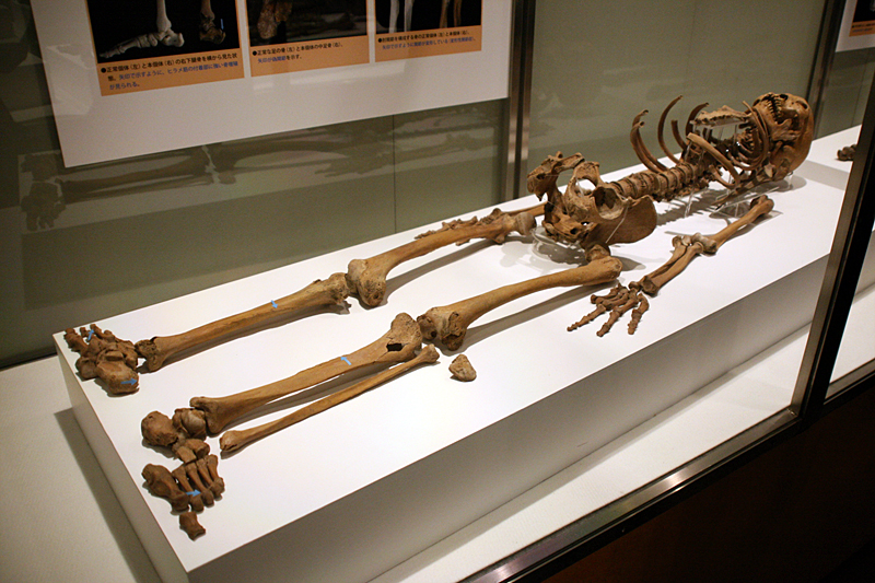 ふくらはぎの筋肉が異常に発達し、肘や肩の関節が変形した骨。駕籠舁(かごかき)か飛脚とみられる