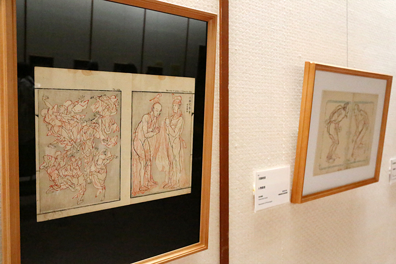 1階には肉筆画が。左が葛飾北斎、右が河鍋暁斎