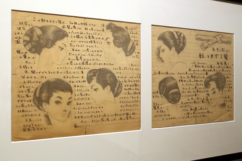 着物に用いる帯紐で髪をアレンジする提案。コメントも中原の直筆