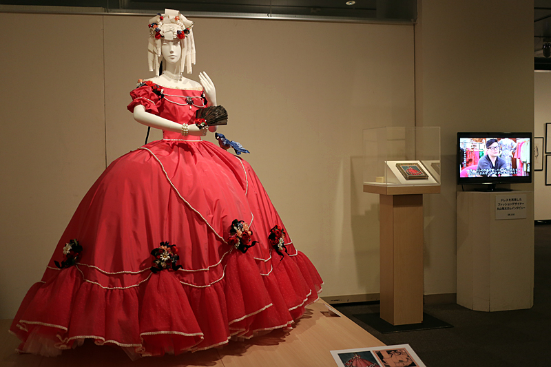 最終章では、中原が描いたシンデレラのドレスをファッションデザイナーの丸山敬太さんが再現した展示なども。晩年に不自由な身体で制作した人形も紹介されています。