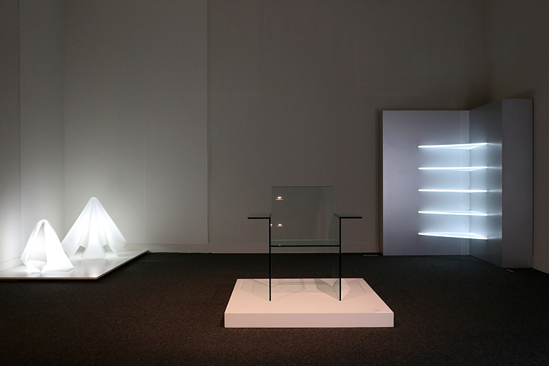 左から《ランプ(オバQ)》《硝子の椅子》《光の棚》