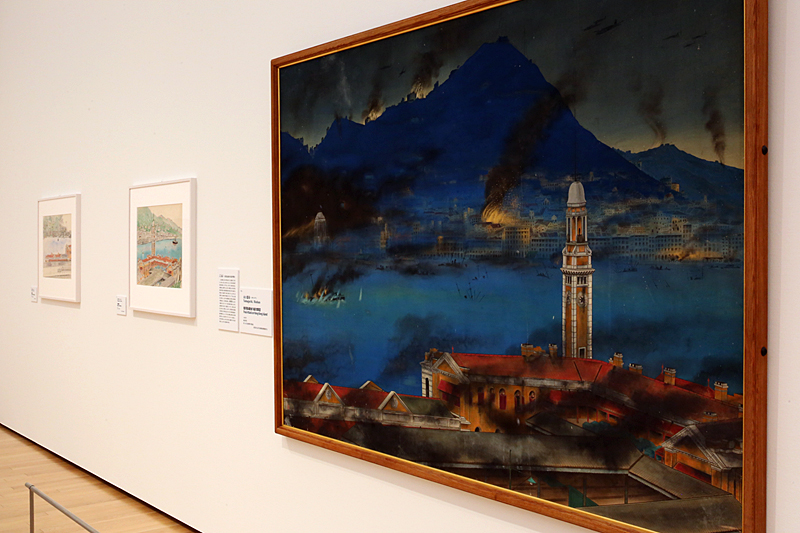 山口蓬春《香港島最後の総攻撃図》1942年(右)