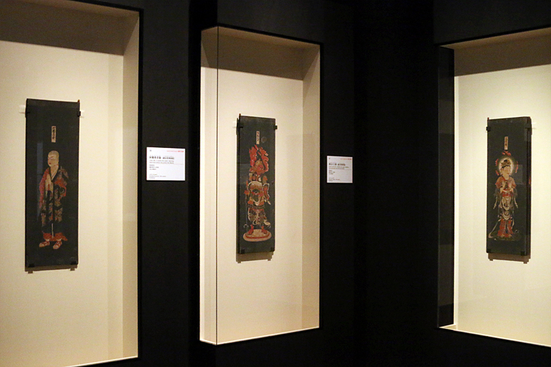 重要文化財《護法善神扉絵》 左から「阿難尊者像」「増長天王像」「帝釈天像」