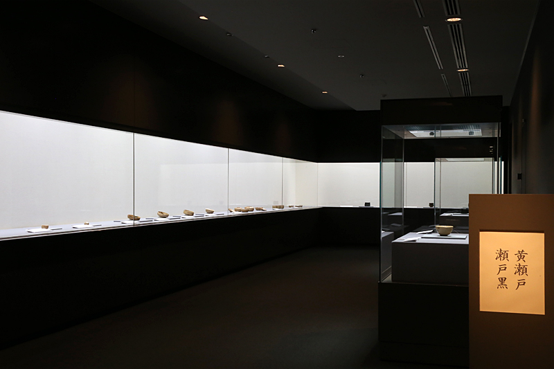 展示室5に並ぶのは、黄瀬戸と瀬戸黒。黄瀬戸は鮮やかな黄釉が掛かった瀬戸焼、瀬戸黒は黒釉で重厚な作行きが特徴です。