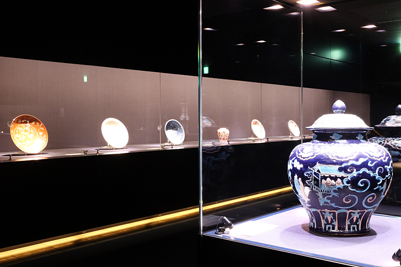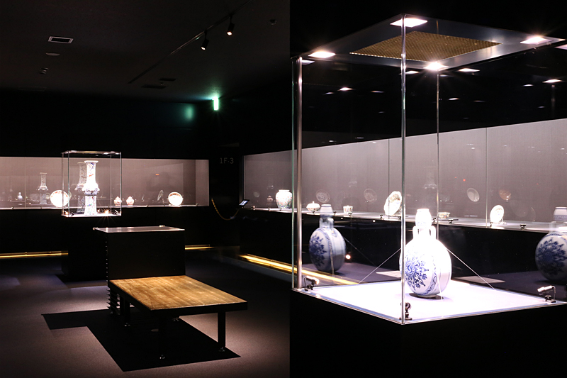 広々とした館内。こちらは1階展示室が大きいので、展示ケースもロングサイズです。一般的な美術館の展示ケースは200m程度ですが、岡田美術館は述べ700m。私設の美術館としては日本最大級です。