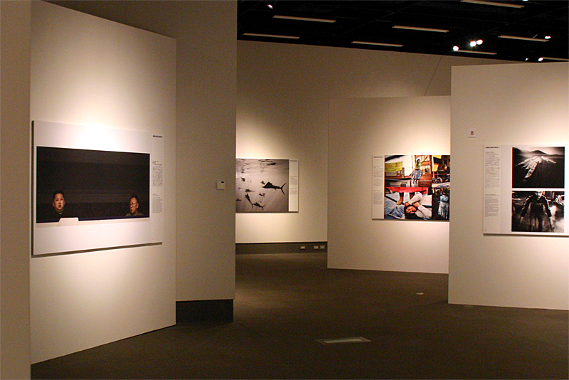 展覧会会場。左手前が世界報道写真大賞を受賞した1枚。