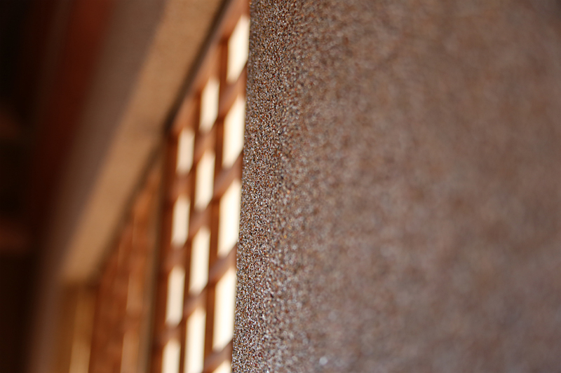 3階の和室「朝陽の間(ちょうようのま)」は応接の場として使われた和室です。赤味を帯びた壁は、細かく砕かれた天然石の瑪瑙(めのう)が塗られており、保存修復工事で瑪瑙を回収・洗浄し、再度塗り上げられました。