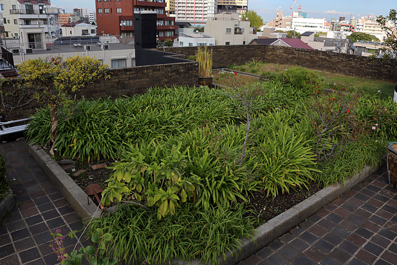 屋上には庭園が設けられています。朝倉がこの建物で彫塑塾を開いていた時は「園芸」が必修科目で、屋上で弟子が野菜を育てていました。