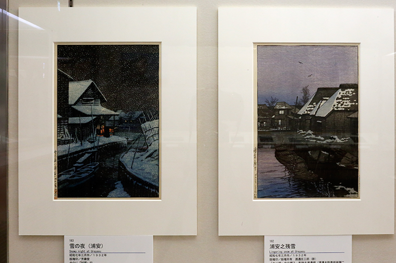 (左から)《雪の夜(浦安)》《浦安之残雪》 同じ地点から別の版元用に描いた、姉妹作品