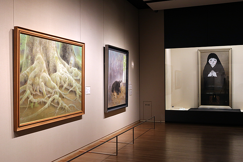 (右から)小川硬《天草(納戸)》 / 山口華楊《生》 / 山口華楊《木精》 いずれも山種美術館