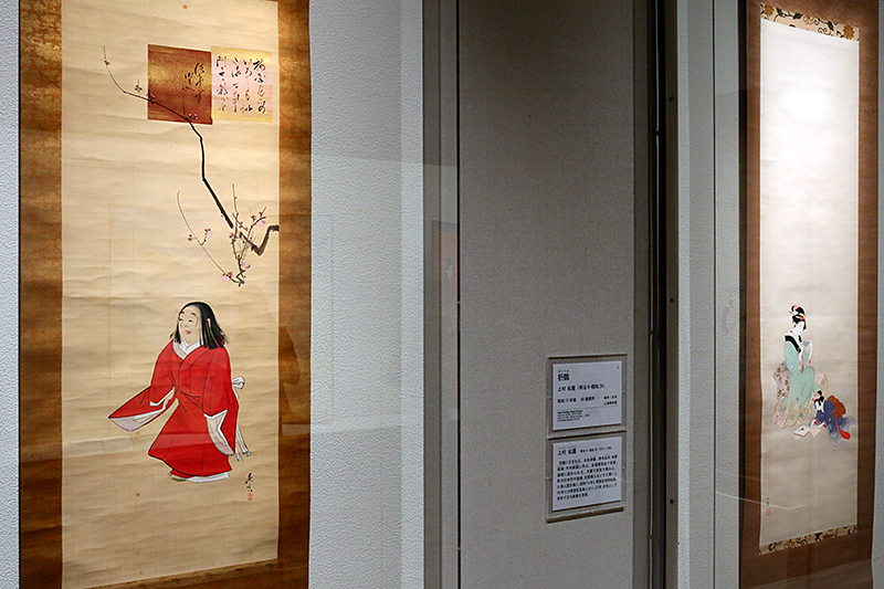 (右から)上村松園《折鶴》 山種美術館 / 柴田是真《菅公七童詠歌図》(展示期間:1/3~2/2)