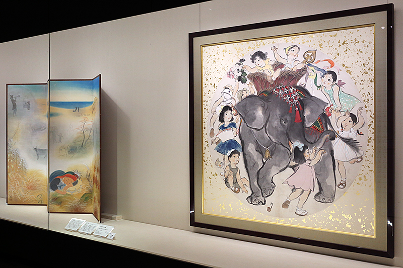 (右から)川端龍子《百子図》 大田区立龍子記念館 © Minami Kawabata & Ryuta Kawabata 2013 / JAA1300195 / 川﨑小虎《ふるさとの夢》 山種美術館