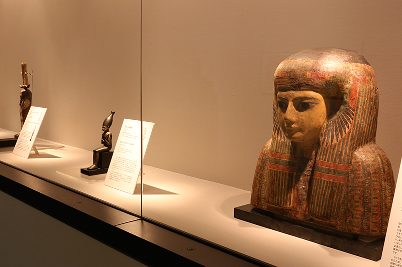 (左)《彩色人形木棺頭部》エジプト 紀元前661~332年頃
