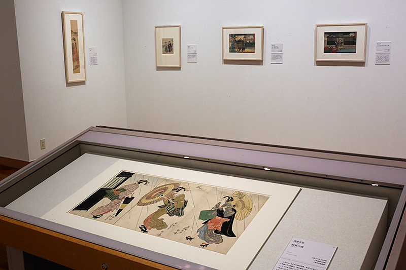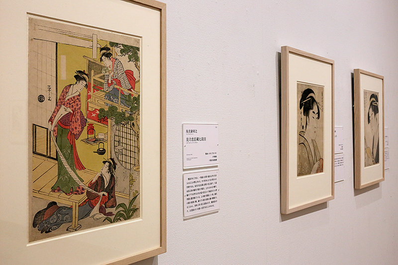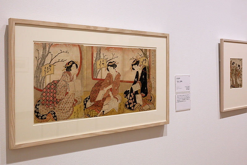 (左から)蹄斎北馬《三囲神社を望む美人》 / 喜多川歌麿《納涼美人図》 / 勝川春章《婦人風俗十二か月 端午》
