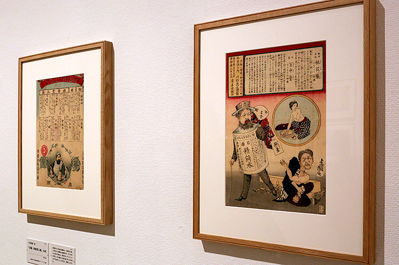 自らがキャラクターになって登場している精錡水の引札。ともに絵は小林清親。
