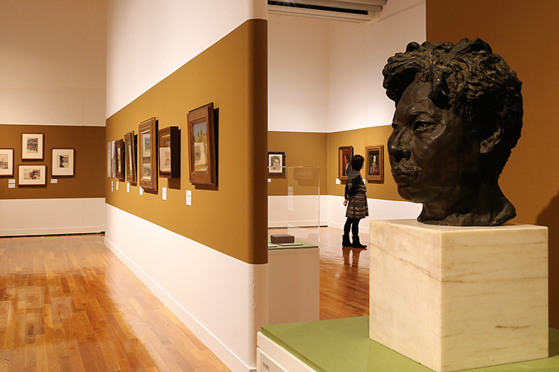 (右)岸田劉生《男の首(柏木氏の首)》は、劉生が生涯に2点のみ作ったという彫刻のひとつ
