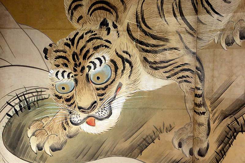狩野安信《竹虎図屏風》(浄福寺) / 狩野安信《人物花鳥画帖》(板橋区立美術館)会場には東京・池上本門寺にある3兄弟の位牌も展示されています。狩野家は熱心な法華宗の信徒で、江戸進出以降は池上本門寺を菩提寺にしていました。