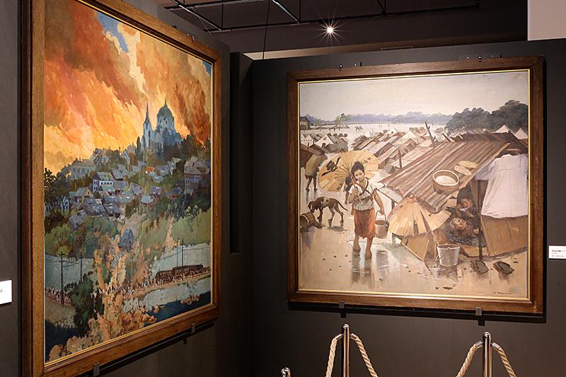 (左から)徳永柳洲「本郷元町より見たるお茶の水附近」(横網町公園復興記念館蔵) / 徳永柳洲「宮城前避難バラック」(横網町公園復興記念館蔵)