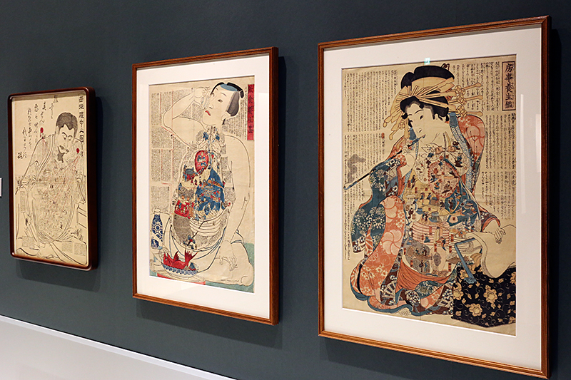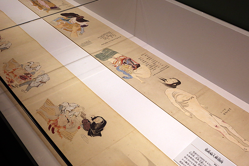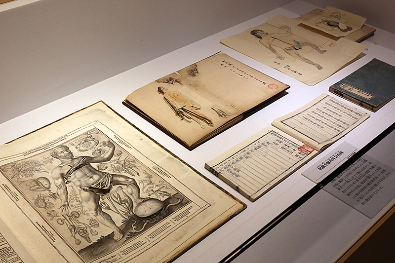 第2章「東から西から~医術の伝来」 左下は「小世界・人体解剖図(オランダ語版)」