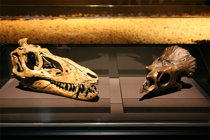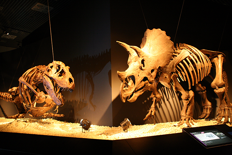 数々の有名な恐竜の中でも、2大スターといえばティラノサウルスとトリケラトプス。最新研究に基づいた全身骨格、対決スタイルで紹介しています。