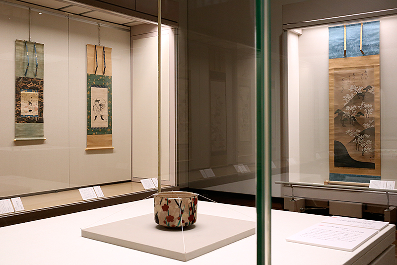 (右から)尾形光琳《三十六歌仙絵 小大君像》 / 尾形光琳《大黒図》 / 尾形乾山《色絵槍梅図茶碗》 / 尾形乾山《吉野山図》