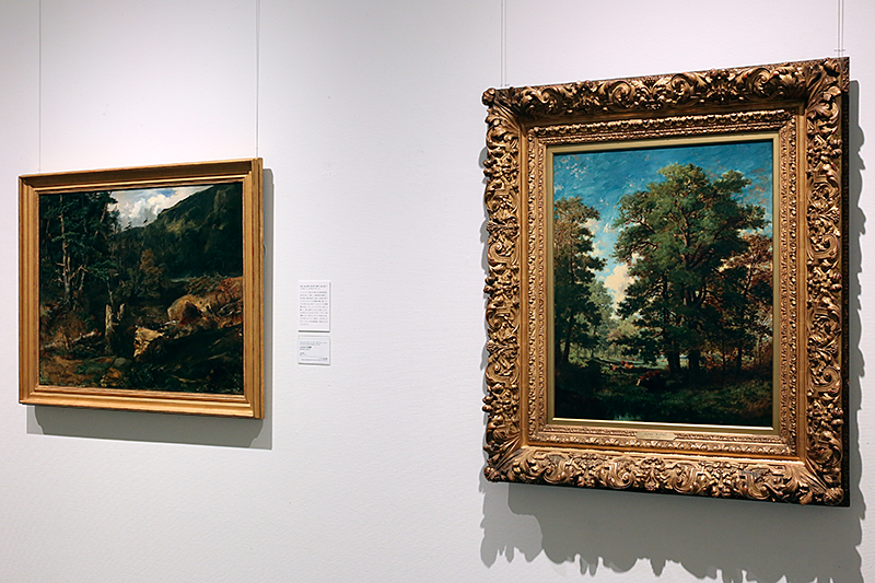 (左から)ピエール=エティエンヌ・テオドール・ルソー《山のなかの風景》 / ジュール・デュプレ《森の中 ─ 夏の朝》