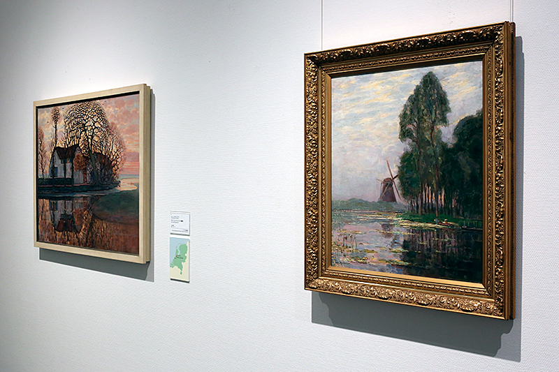 (左から)ピート・モンドリアン《ダイフェンドレヒトの農場》 / ピート・モンドリアン《アムステルダムの東、オーストザイゼの風車》