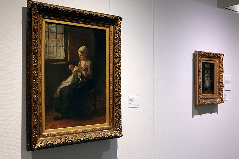 (左)ヨーゼフ・イスラエルス《縫い物をする若い女》